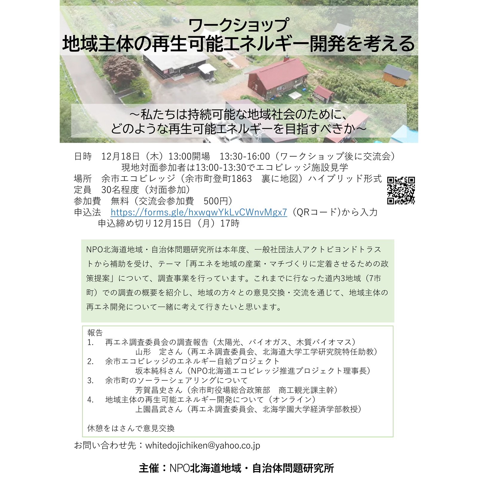 ワークショップ地域主体の再生可能エネルギー開発を考える -