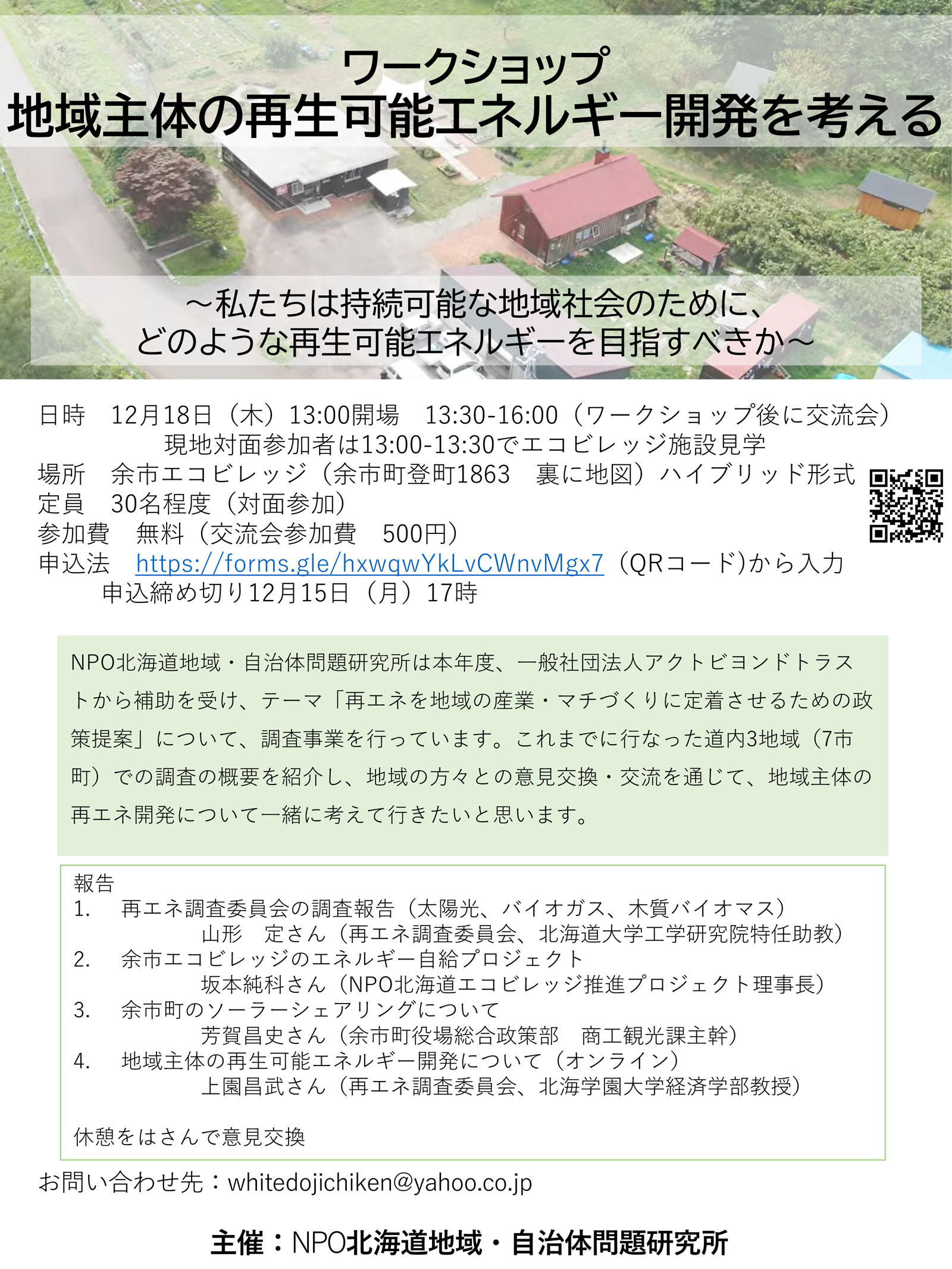 2025年の活動報告を会員さんとともに行います。様々なことを行っているエコビレッジですが、今年注力したことを中心にお話をします。「どんなことをしているの?」、「活動に興味があるけど、どんな参加方法があるの?」という方、そうではなくてもお気軽にご参加ください。